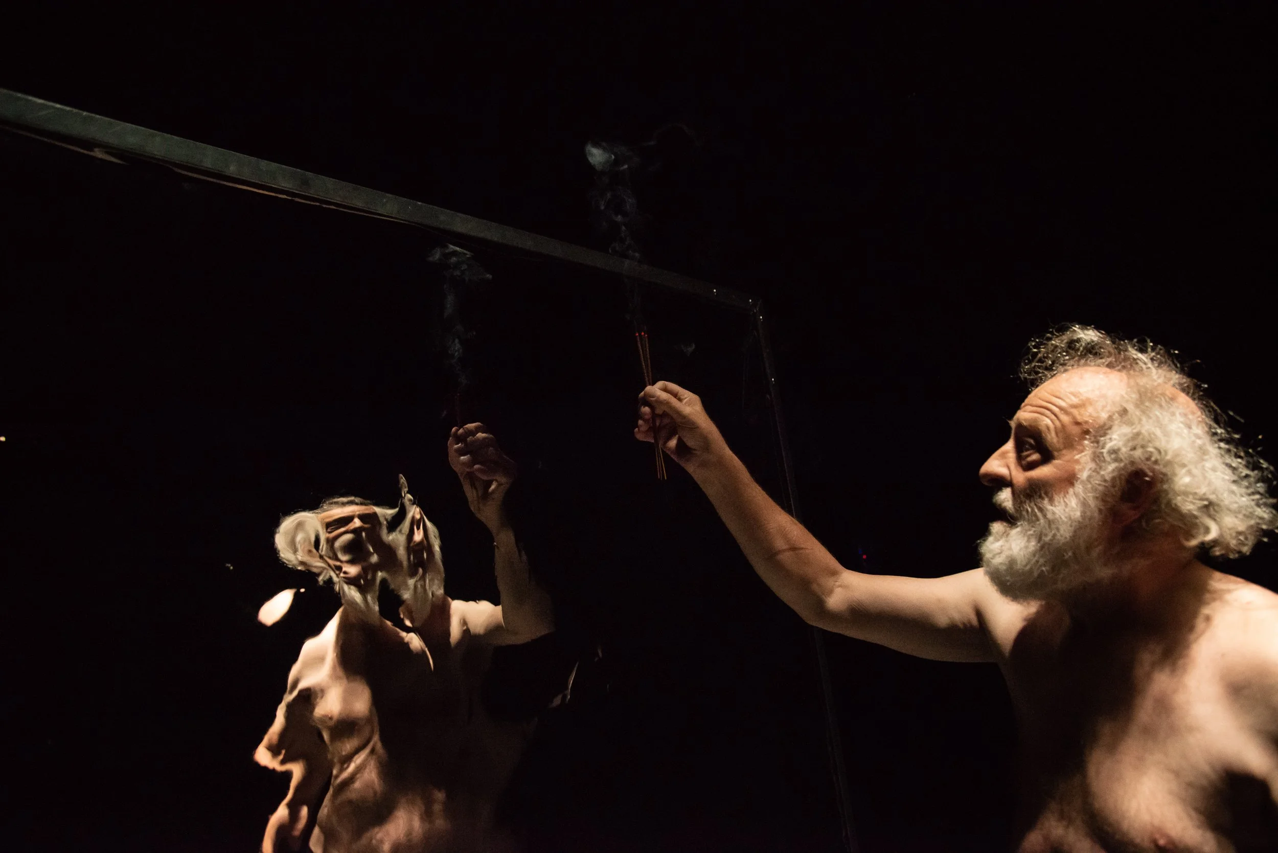 While an old man is performing a noble ritual, an unconscious woman wakes up, lamenting over the deteriorated parts of her body in the fragments of distorted memories. The tangled whirpool of each person's time and space is transcended, creating another conflicted self. Conflicts begin with the illu-sion that the elderly are cared for with utmost sincerity and women are confined in an isolated space, and the belief that it is a safe shield is distorted. The collided energy rotates and descends miserably at the border between reality and fantasy and is sucked back into the eye of the storm. Can the walls of different beliets and realities be healed by a body that transcends time against them?